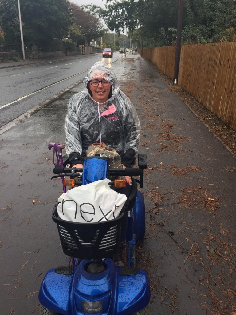 Our last attendance however the weather wasn’t quite so kind, by fuck did it rain!! We’d parked the camper at a golf course about a mile away, I had my scooter so no worries there and from the moment we got up on race day it absolutely threw it down. There’s me pottering about wearing what is basically a clear fucking bin bag looking oh-so pretty. Not. Luckily I’d left the dogs with the boarder and we had my mum with us so I had some company while the husband did what he did best – helped everyone out. Aside from being piss-wet-through and resembling a drowned rat it was a good day! After the racing had finished me and my mum headed back to the camper to get dry and warm and ready to go out for a meal with friends that evening. So I park my scooter next to the camper and haul my fat ass off it leaning on the side of the van for stability but, you guessed it, the side of the van was running with water so…. Down I went, slow-mo style, sliding down the side until I’m fully on the floor in the wet and the dirt. Bollocks. Mums there feigning concern, offering to help me up whilst simultaneously trying not to piss her pants from laughing. Initially waving her off “I can do it!!” As is my usual phrase. Only I couldn’t do it, so I had to accept her empty offer of help, and she was still bloody laughing!